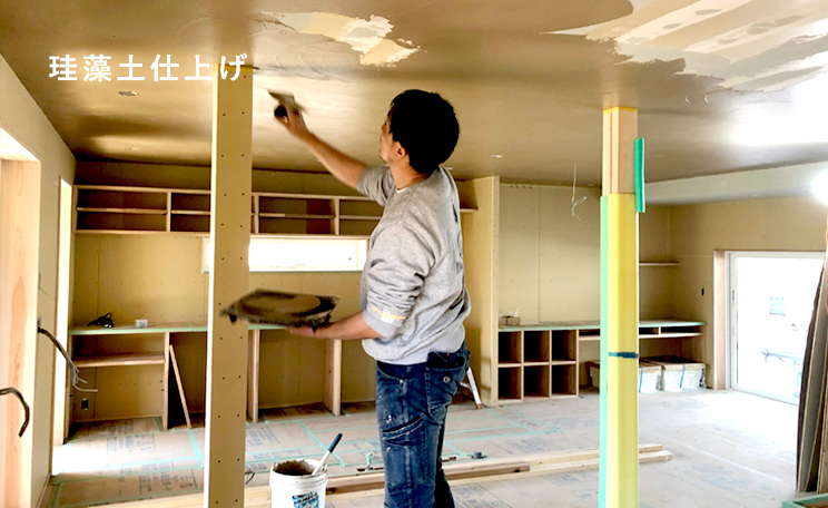 珪藻土や漆喰は、ビニルクロスや塗装仕上げに比べてコスト・メンテナンスはかかりますが、自然素材でできた空間は心地よく、実際に施工されたお客様に好評です。