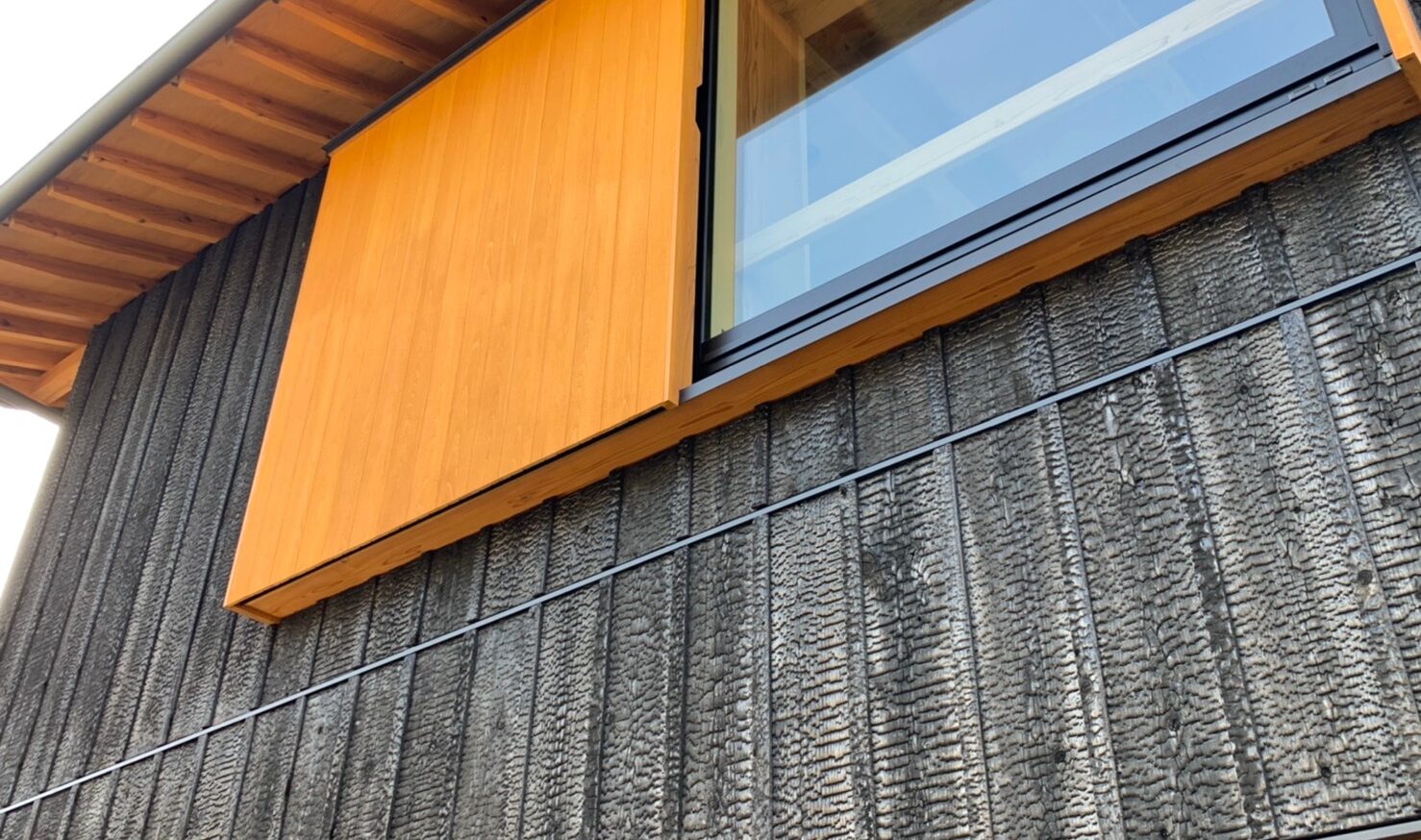 ・三角焼きという伝統技法による上質の焼杉外壁のかっこよさ。