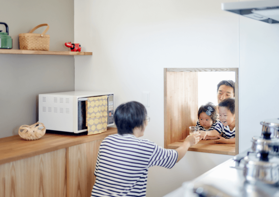 ・キッチンから子どもが遊んでいる様子が見える窓