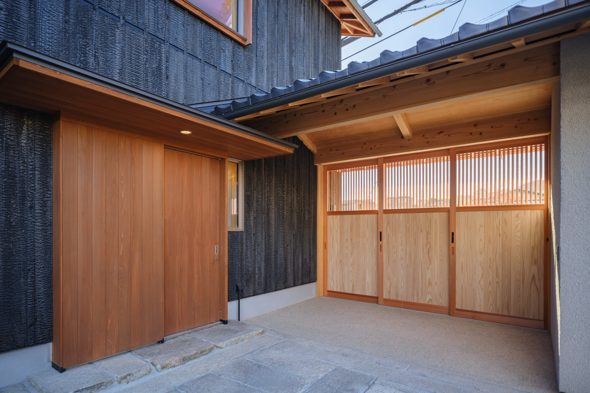 その記憶を絶やさぬように、この住まいは、家と一体となるかたちで門を設えています。